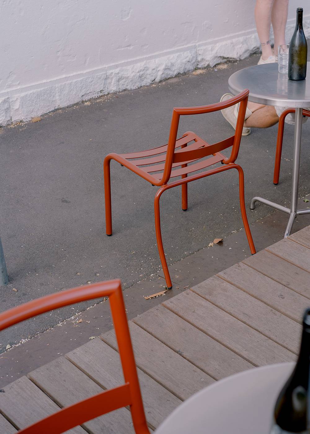 Enzo Stacking Chair. Manufactured in the North of Italy, which is officially, unofficially referred to as the “triangle of the chair”. Enzo, named after the greats; Mari, Ferrari …and Cerritelli. Available with or without arms. Made from mild steel, which is sand blasted, then zinc-plated and powder coated.